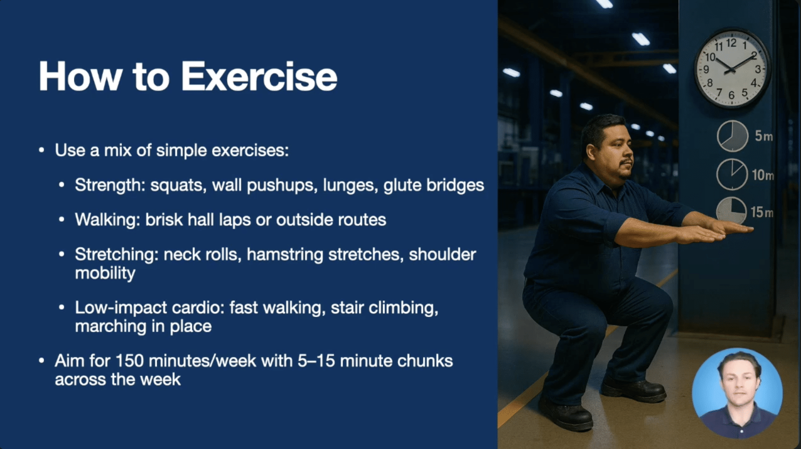 This comprehensive segment details various exercise styles—including calisthenics, weightlifting, and cardio—and how to adapt them to a night shift schedule. Dr. Pendergrst explains the benefits of exercising before a shift for alertness versus light activity after work to help the body transition into “night mode” for better sleep. You will also discover the 150-minute weekly goal and how to reach it using manageable 5-to-15 minute intervals. Safety remains a priority, with tips on warming up and recognizing when to scale back intensity based on your fatigue levels.